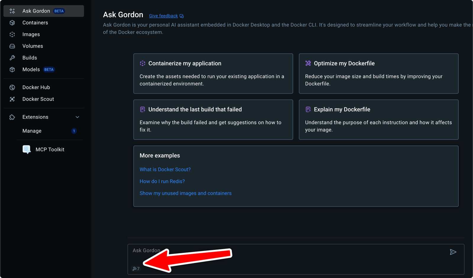 Ask Gordon: Docker-Desktop-specific basic AI chat for helping with Docker tools and commands.